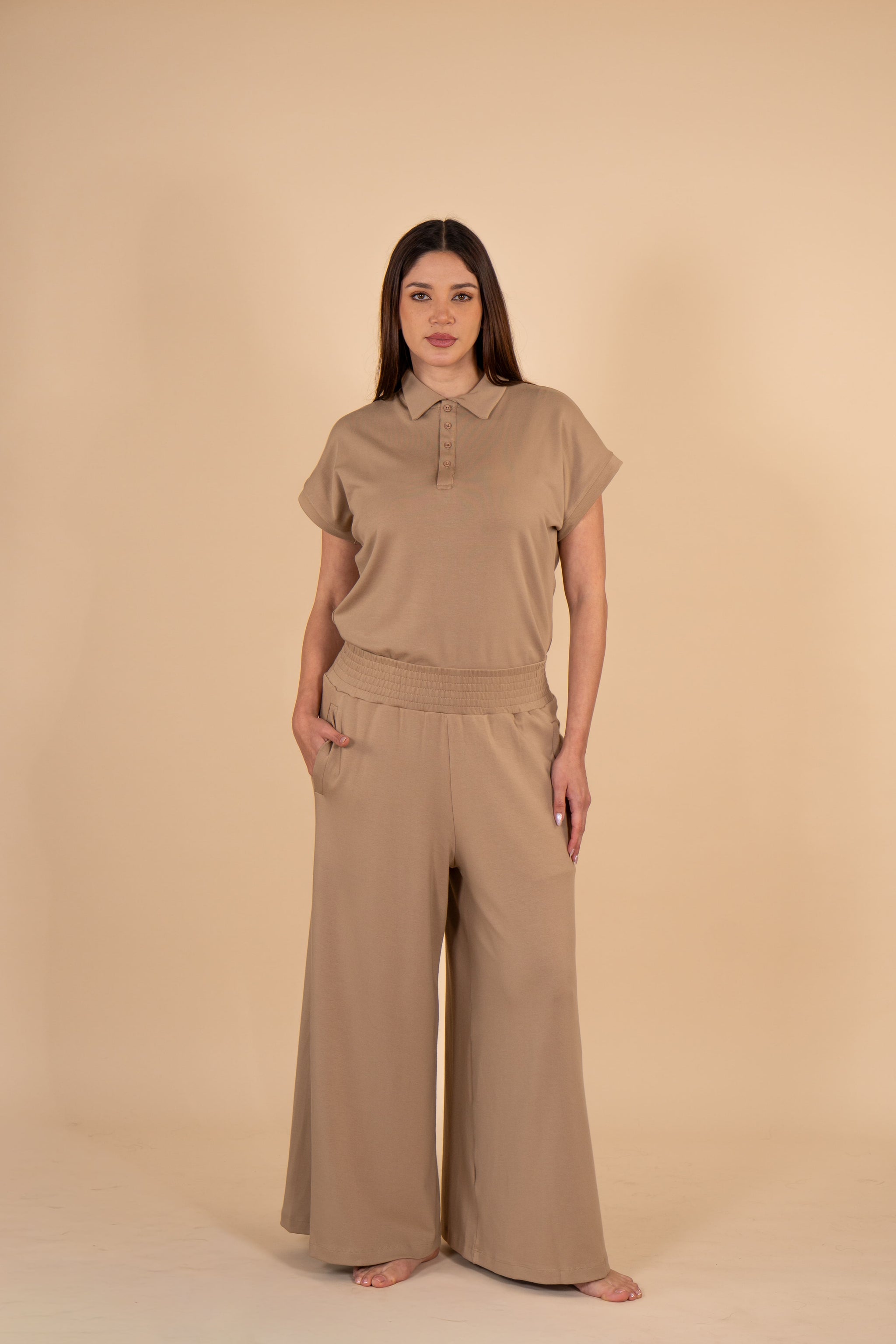 Palazzo de bota ancha y bolsillo laterales de Algodón Pima con modal y elastano